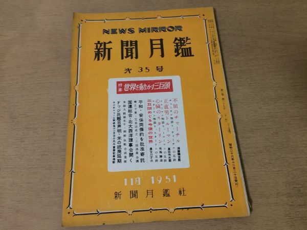 > ●K22F●新聞月鑑●35●1951年11月●不屈のチャーチル正直男トルーマン心臓のスターリン平和安保両篠約を批准寄託●即決
