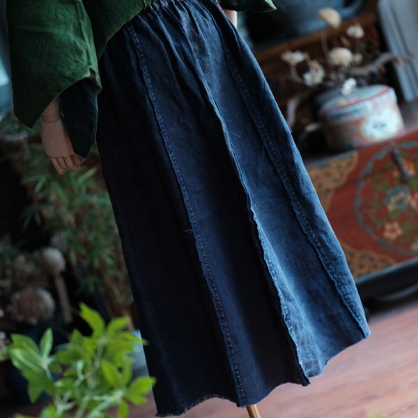 - lgn 2068 スカート アンティーク風 色落ち加工 洋服ミックス ロマンファッション 麻100% RINENリネン ネイビー