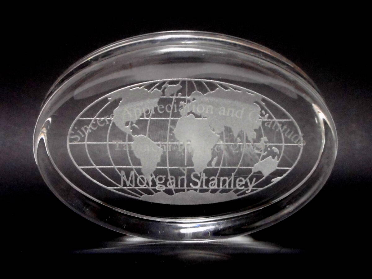 - モルガン・スタンレー 田町プロジェクト2002 3D クリスタル ペーパーウェイト ガラス 置物 オブジェ 非売品 記念品
