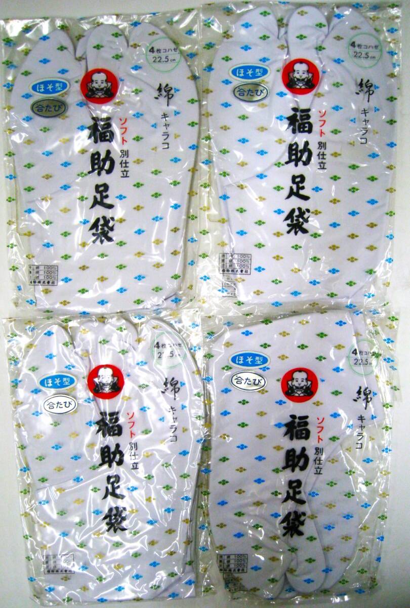 - 【東京 谷中 質屋おぢさん】新品ソフト別仕立 福助 足袋 ほそ型4足セット22.5cm4枚コハゼ綿キャラコa