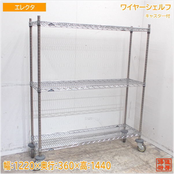 - エレクタ キャスター付ワイヤーシェルフ 1220×360×1440 中古厨房/24G1932Z