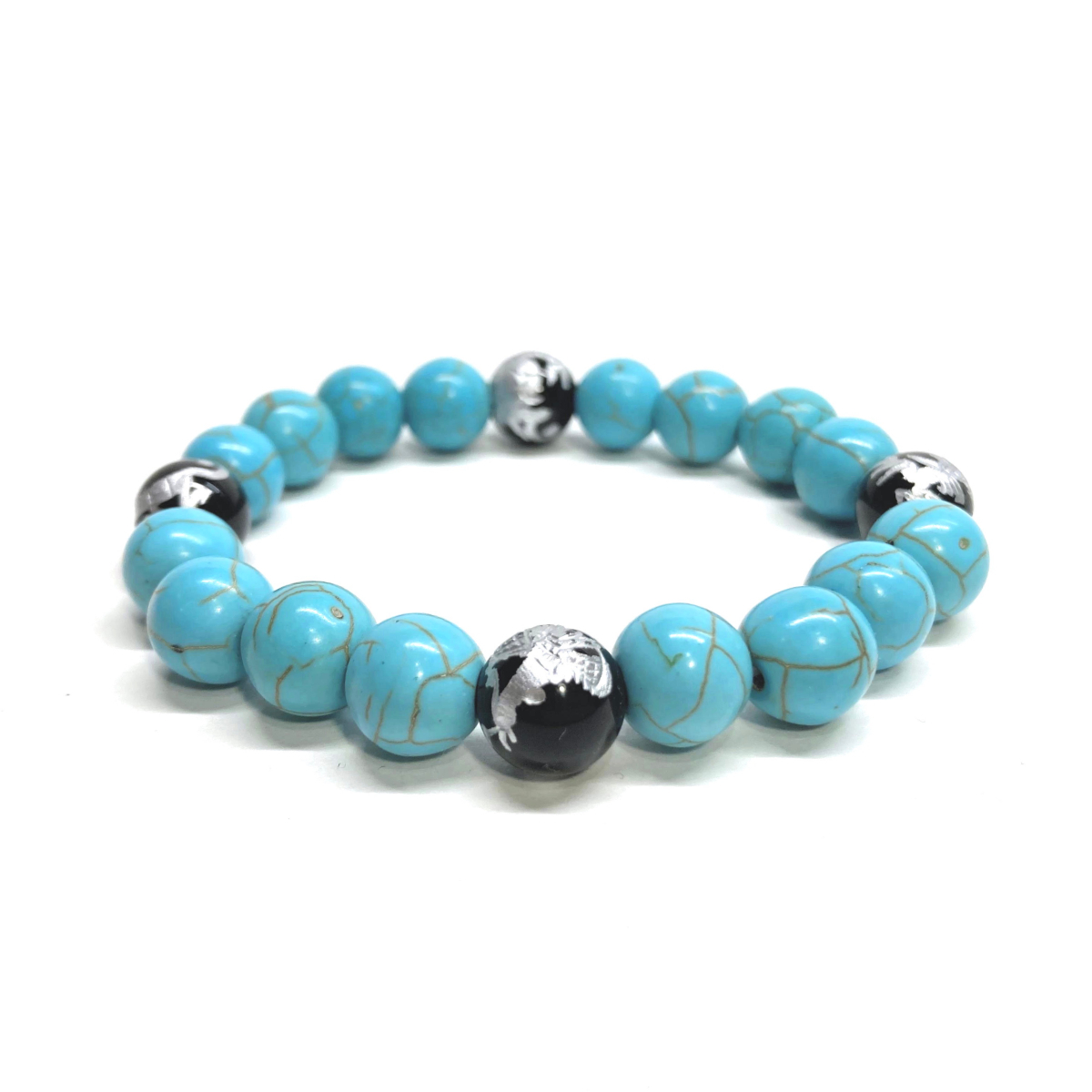 - 10mm 四神獣銀彫オニキス×ターコイズ パワーストーン ブレスレット天然石 運気上昇 開運 金運 恋愛運 お守り 青龍 白虎 玄武 朱雀 #2