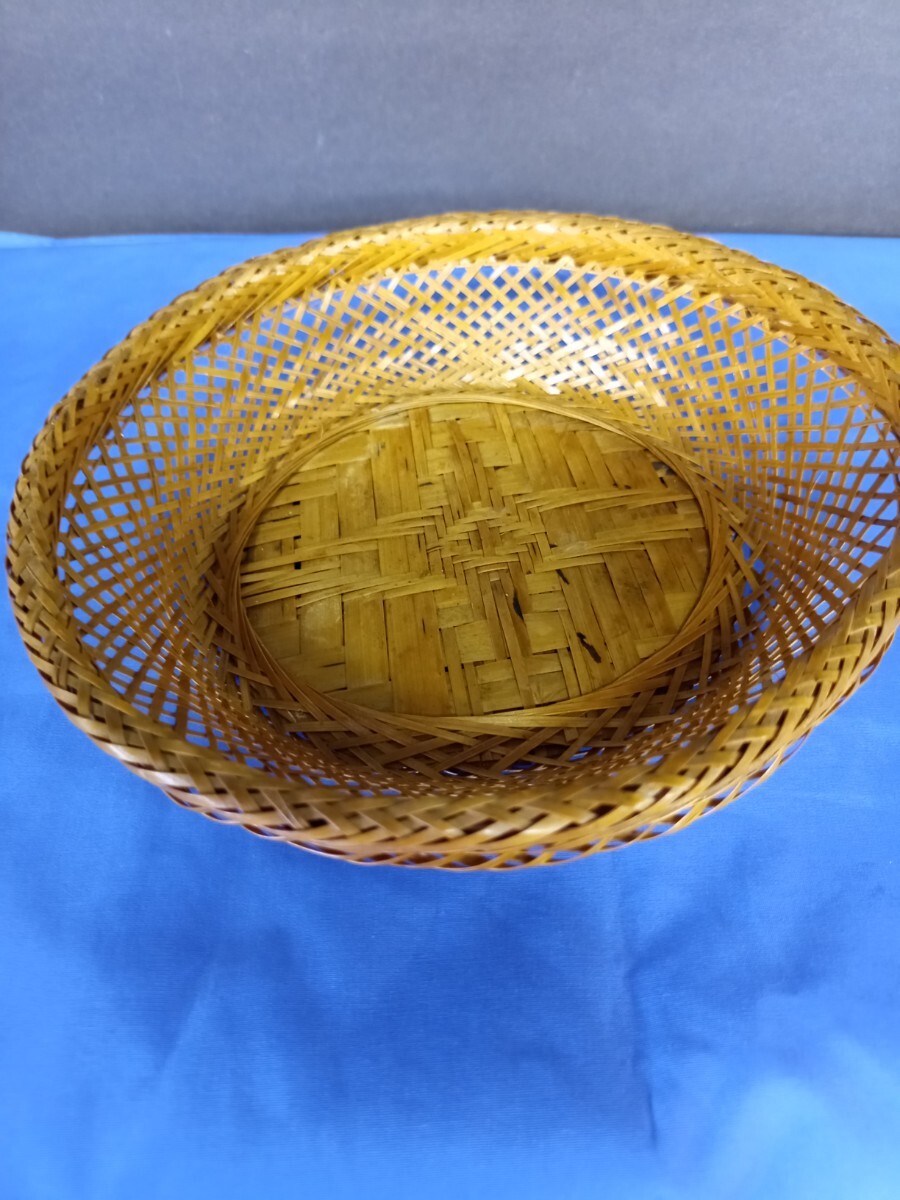 - 昭和レトロ■竹細工 竹製 かご 小物入れ バスケット20.5cm 籠 ザル ざる