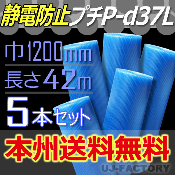> 【送料無料!/法人様・個人事業主様】★川上産業 3層構造/静電気防止 プチプチ/ブルー 1200mm×42m(B-d37L) 5本/ロール・シート