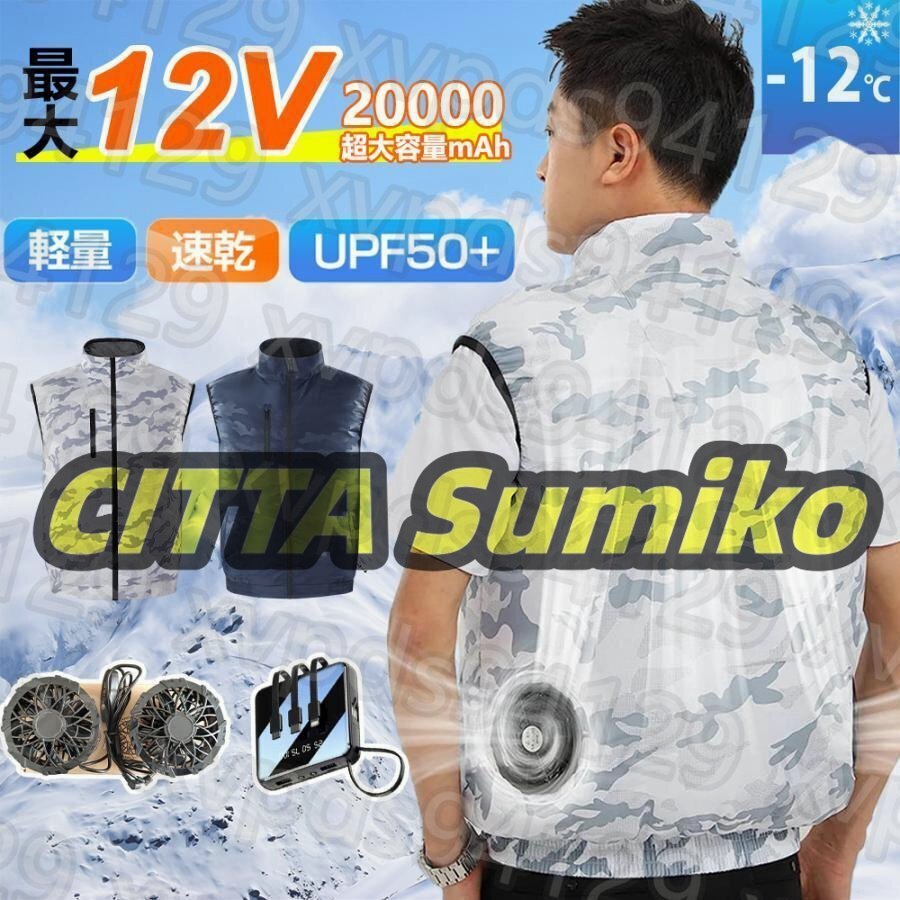- 空調作業服 空調ベスト 20000mAh 12V ファン付きベスト ワークマン ウェア 作業服 扇風機 大風量薄型 エアコン服 空調冷風服 熱中症対策