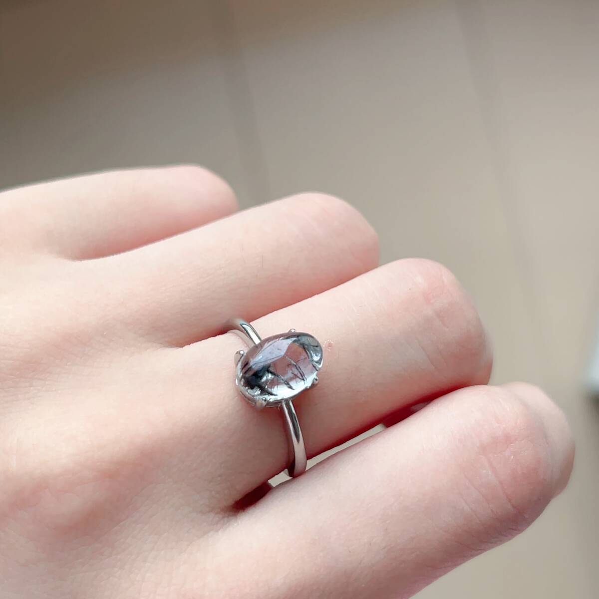 > ◇高い透明度◇ブラックルチルクォーツ(黒針水晶)◇リング◇指輪◇パワーストーン◇天然石◇巾着袋付き◇プレゼントにも 031R81109