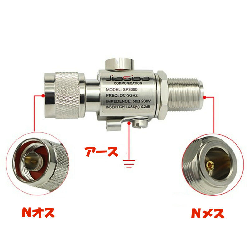 - Nメス/Nオス端子の雷よけ, ハイパワー同軸避雷器[JIASIDA コミュニケーション SP3000], サージ・プロテクタ, Nオス/Nメス,HF/VHF/UHF
