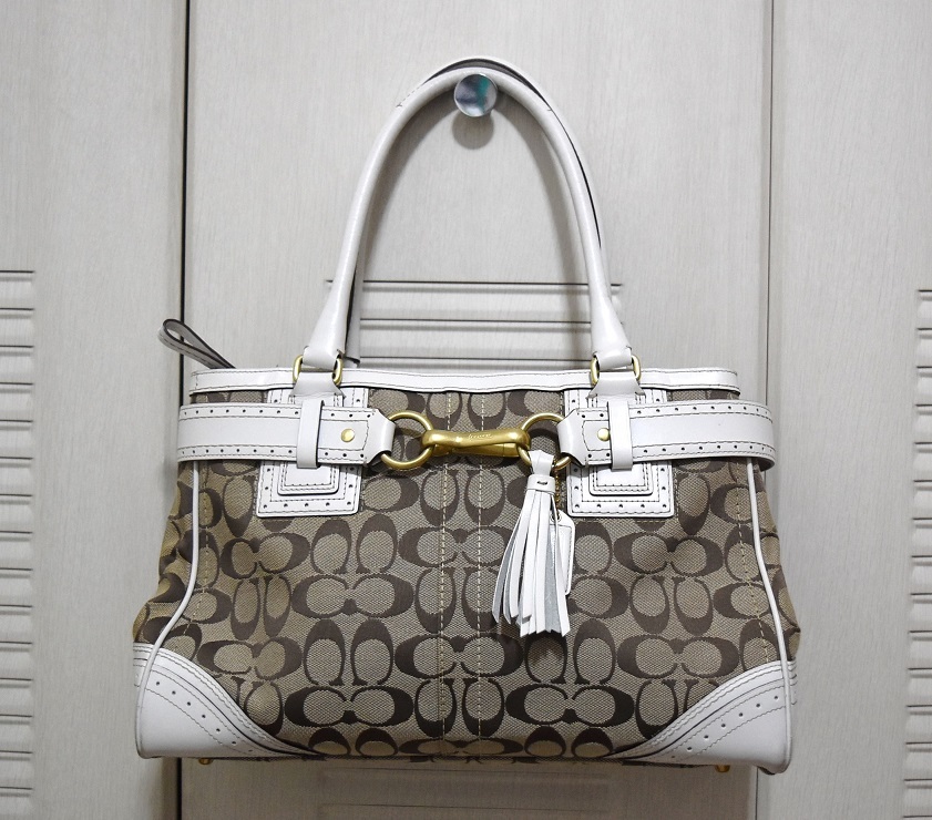 > 送料込み!コーチ シグネチャー キャンパス ハンドバッグ ホワイト白 夏 A4 カジュアル Coach