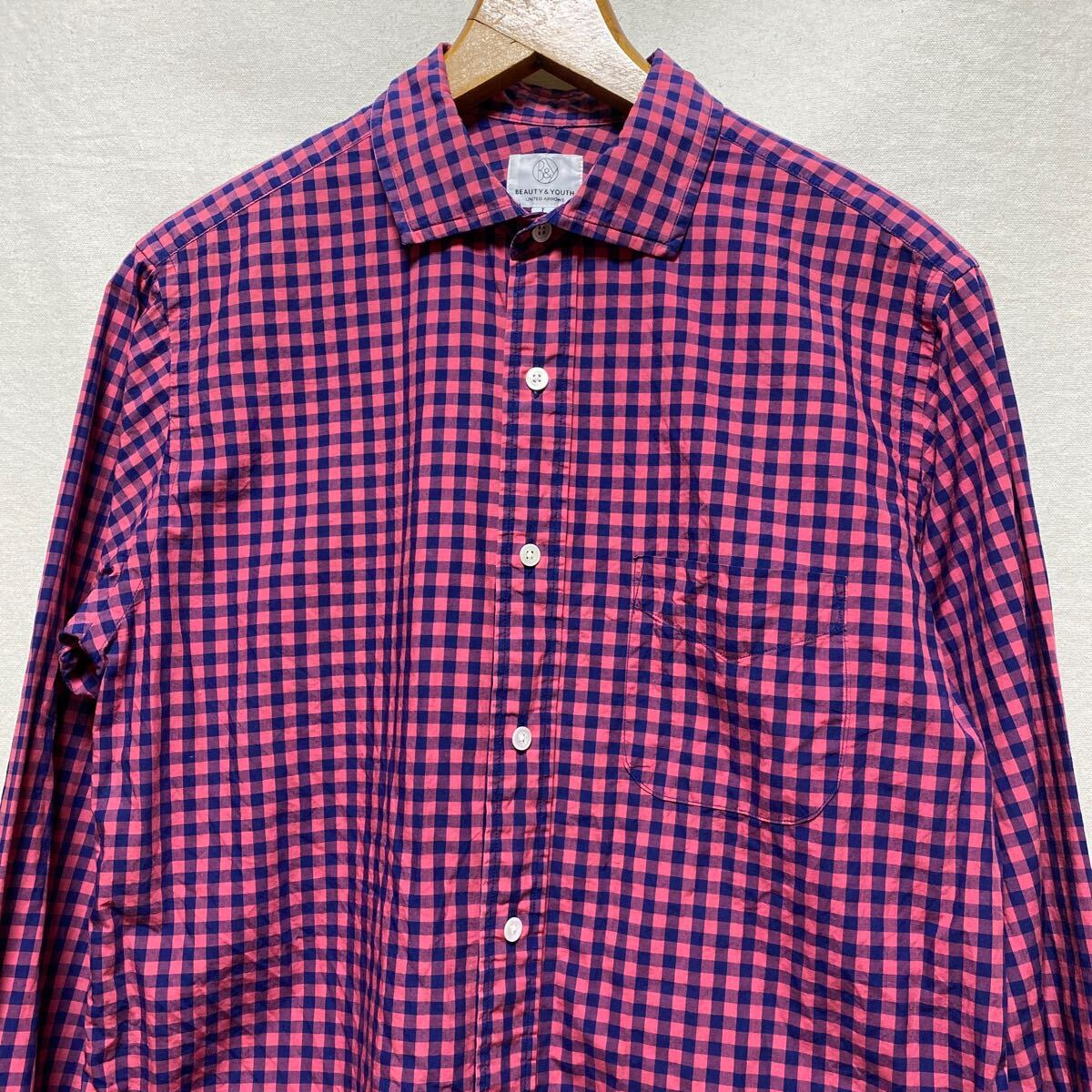 - BEAUTY&YOUTH ギンガムチェック ホリゾンタルカラーシャツ 長袖シャツ ブロード コットン B&Y UNITEDARROWS ユナイテッドアローズ