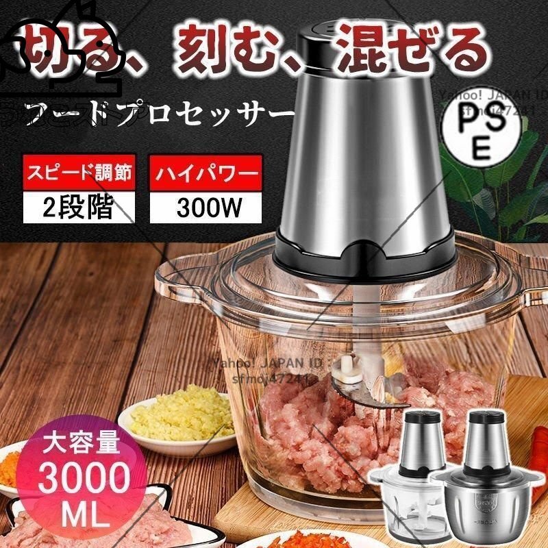 > フードプロセッサー ミキサー 3L大容量 1台3役 電動 ミートチョッパー 家庭用 業務用 粉砕機 肉挽き器 豆ひき機 4枚パーツ 速度調節 調理