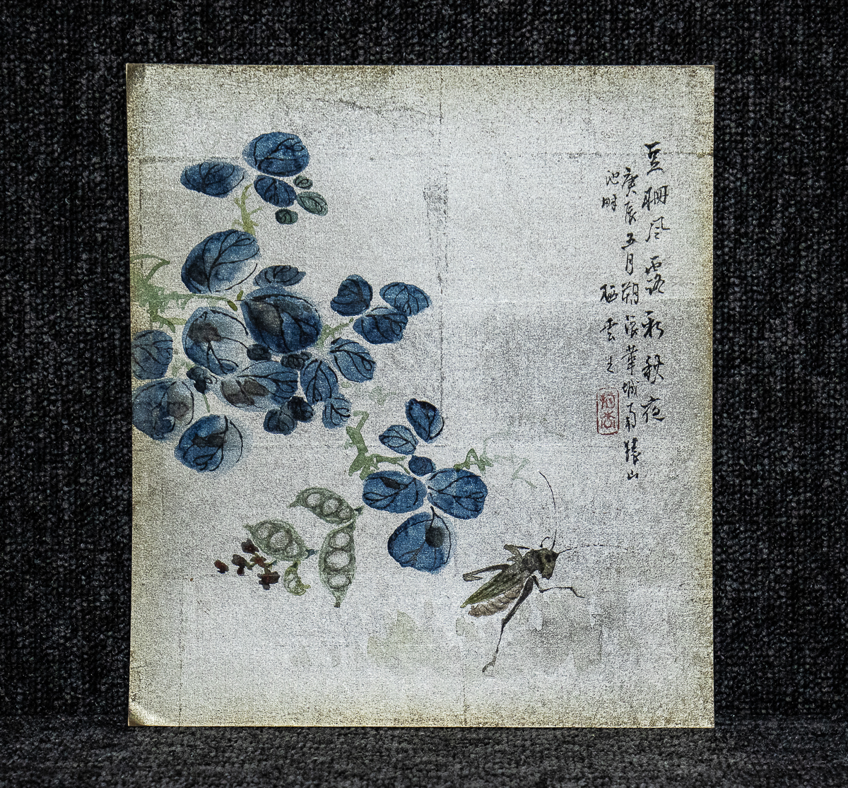 - 色紙ー1373 木村棲雲 秋草 銀地 絹本【真作】