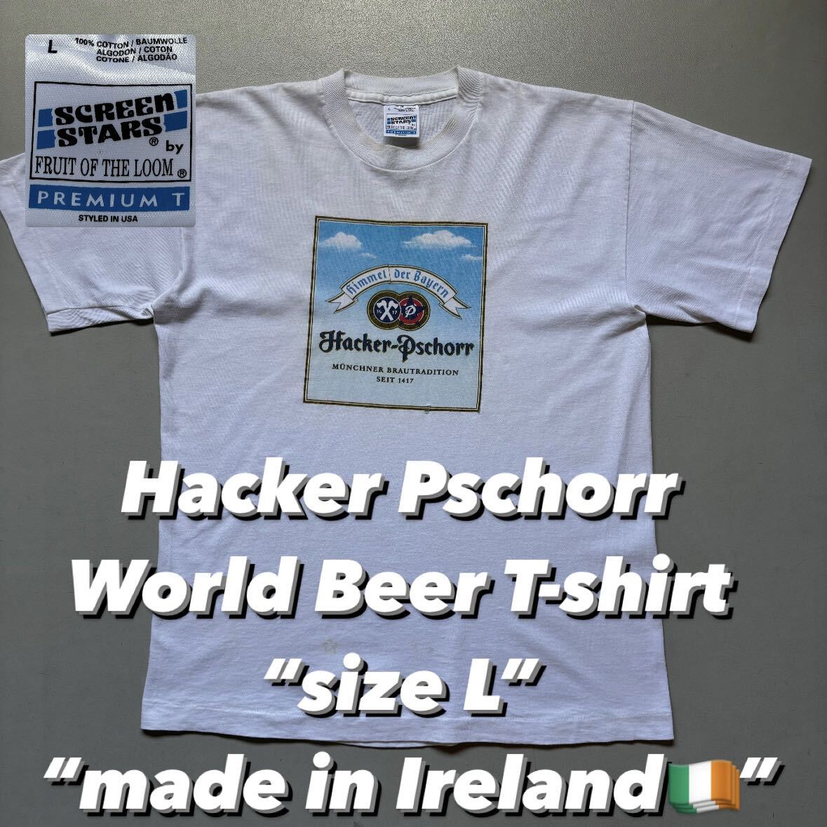 > Hacker Pschorr World Beer T-shirt “size L” “made in Ireland” ハッカープショール ドイツビール 企業 会社 半袖Tee Tシャツ