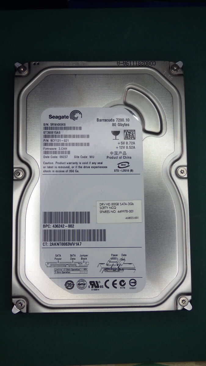 > Seagate 3.5インチHDD SATA ST380815AS 80GB 動作確認済(80013)