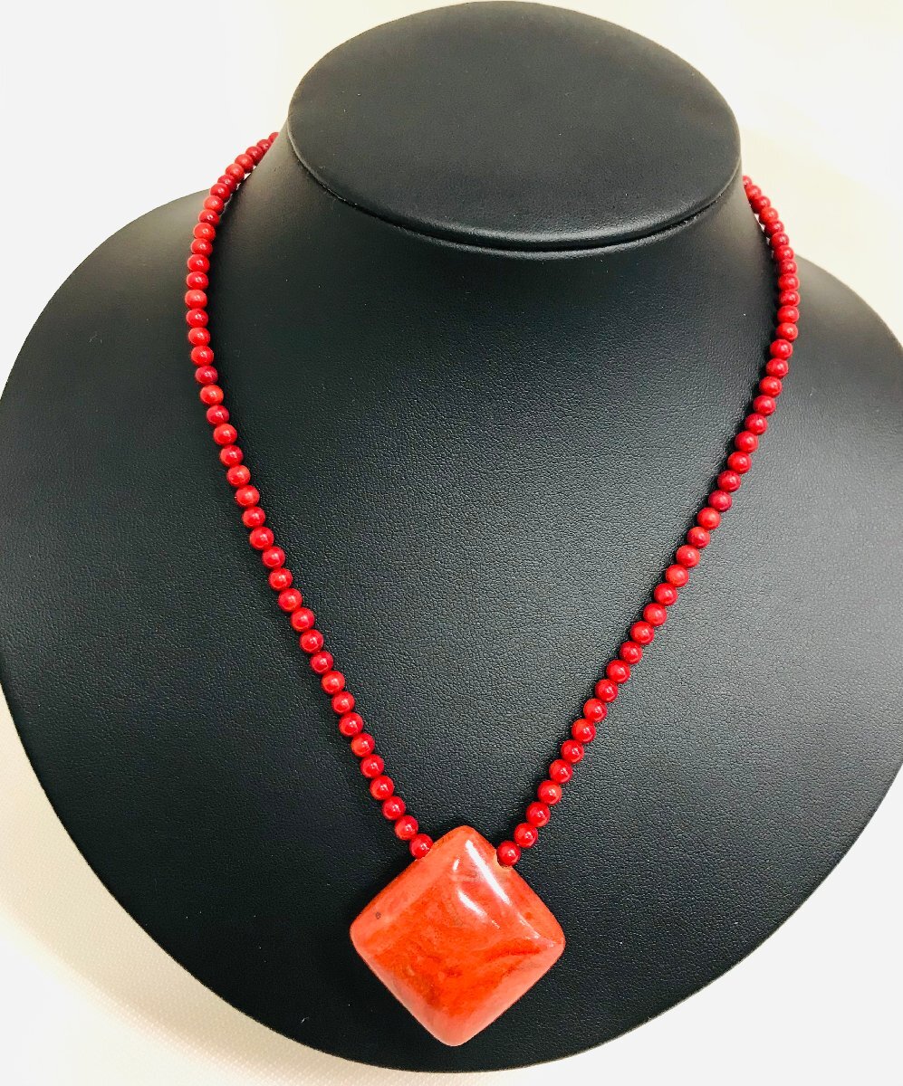 - 天然サンゴ コーラル ネックレス 朱色 オレンジ 4mm玉 ソーティング付き qoj.YO601