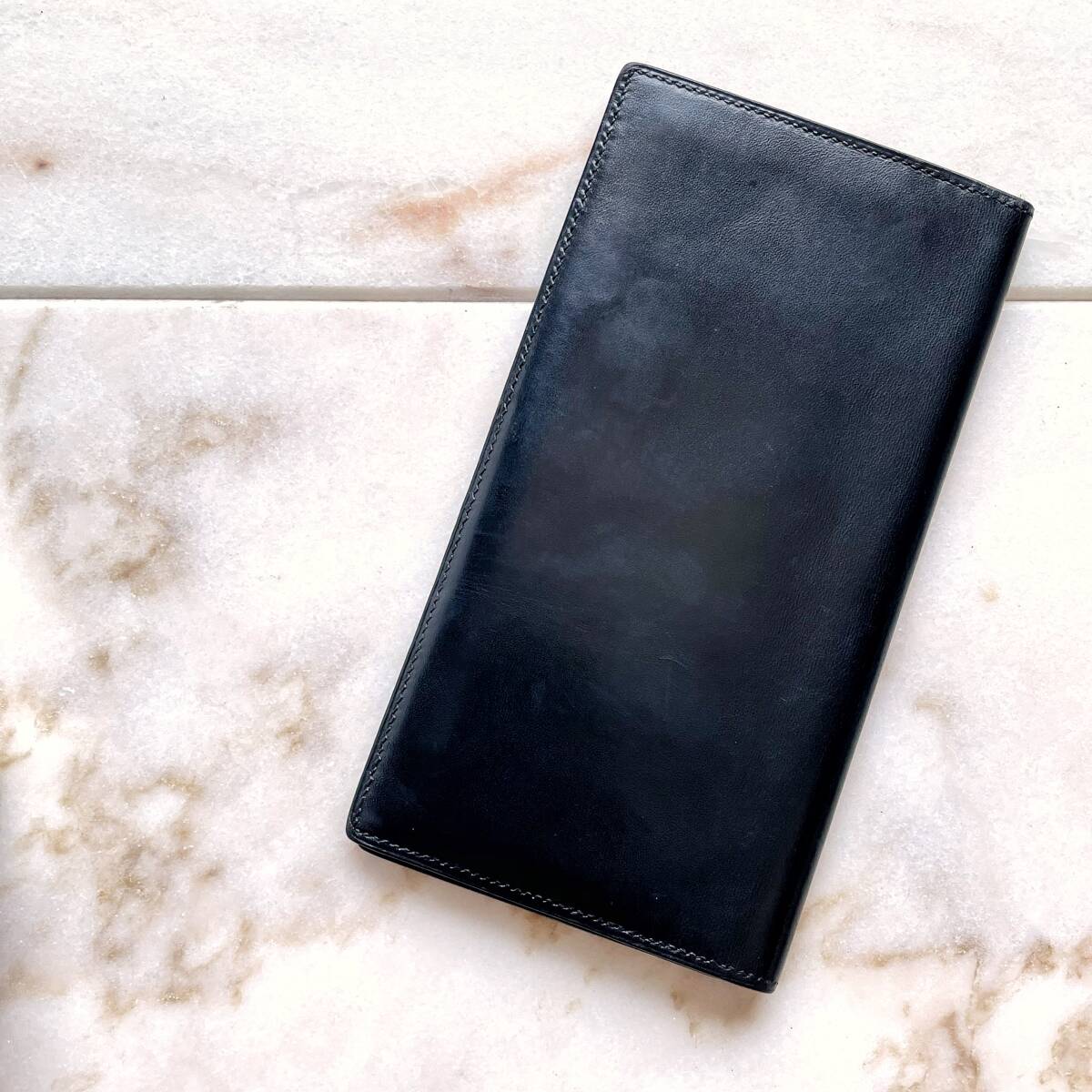 - HERMES エルメス ベアン フレミング ボックスカーフ 黒 長札入 長財布