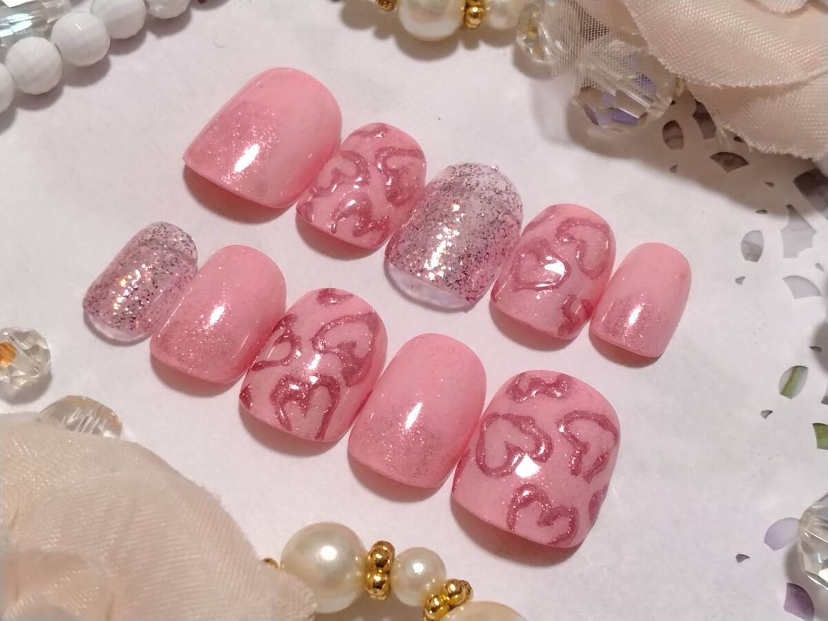 - 即決☆ジェル加工済ネイルチップ☆ベリーショートS ハートミラー ピンク