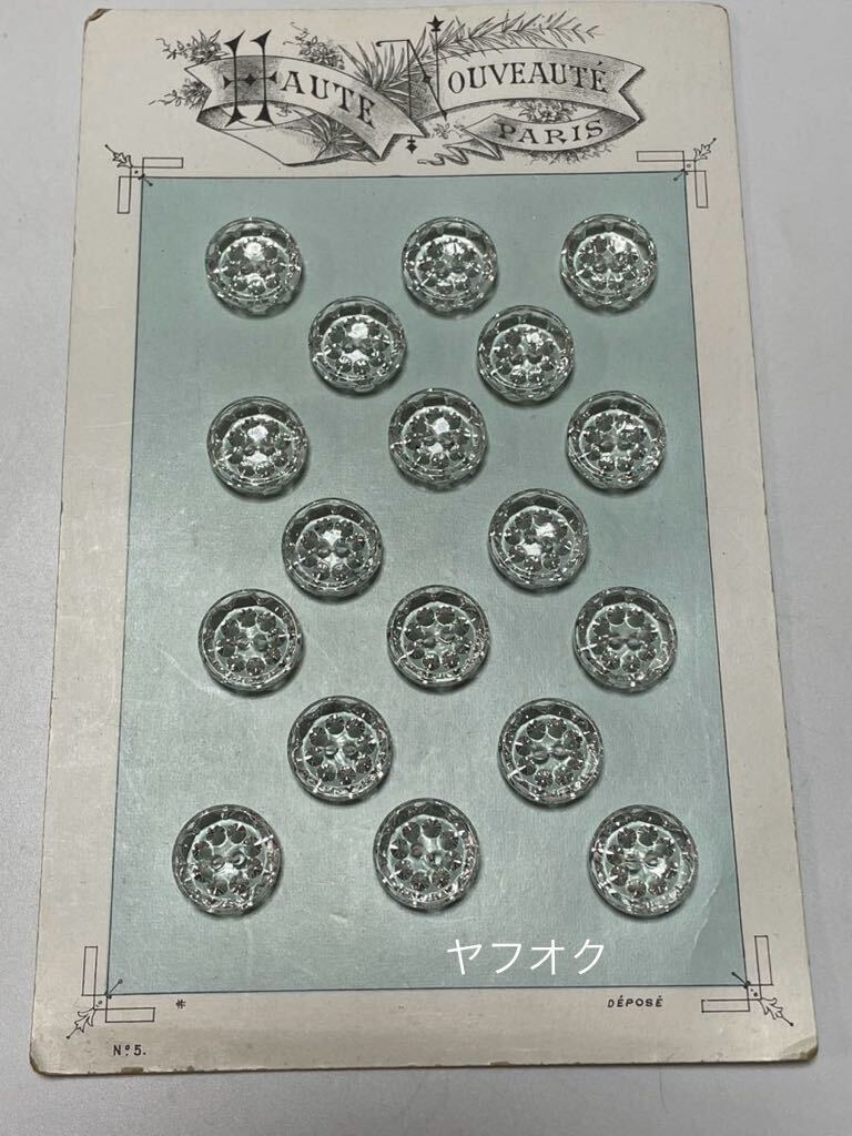 - ガラスボタン 18個 フランス アンティーク ヴィンテージ 17.7ミリ クリア ボタンシート