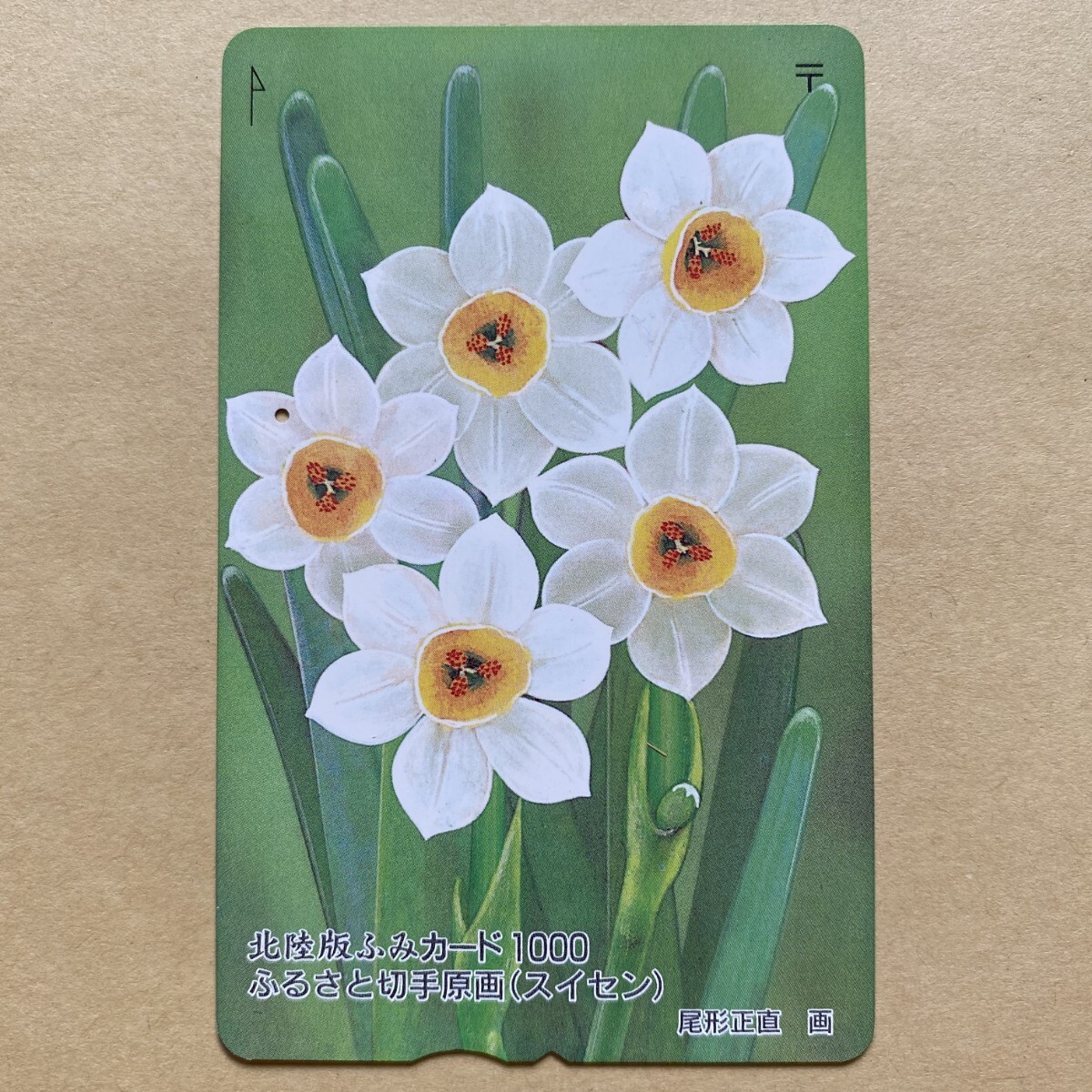 - 【使用済】 ふみカード 北陸版 ふるさと切手原画(スイセン) 尾形正直