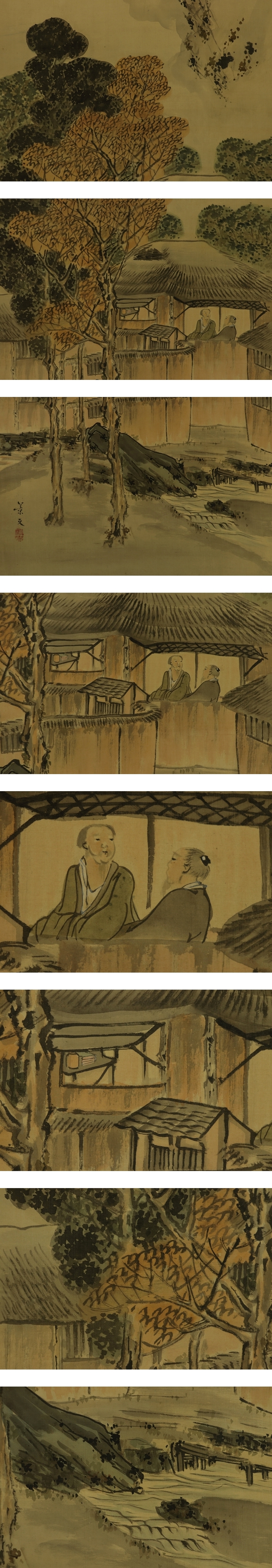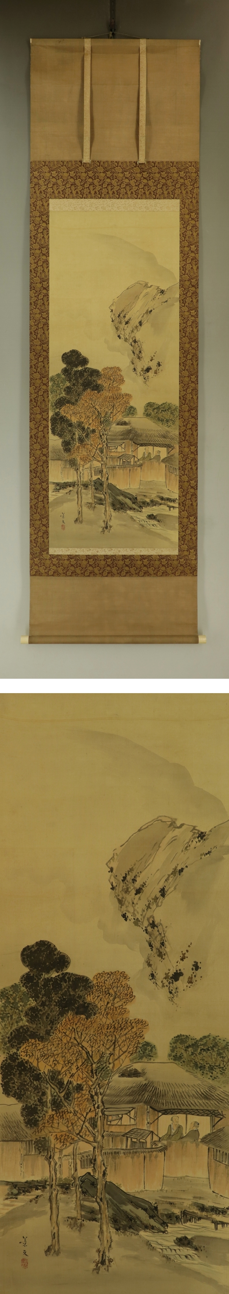 - 【模写】松村景文【秋山閑居図】◆絹本◆合箱◆掛軸 s07032