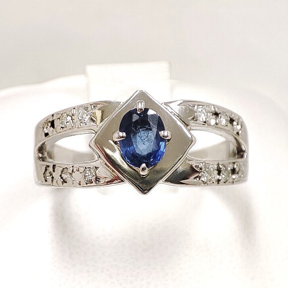 - Y9123★Pt900 天然サファイア 0.41ct 天然ダイヤモンド 0.11ct リング★15.5号 5.5g 仕上げ済み