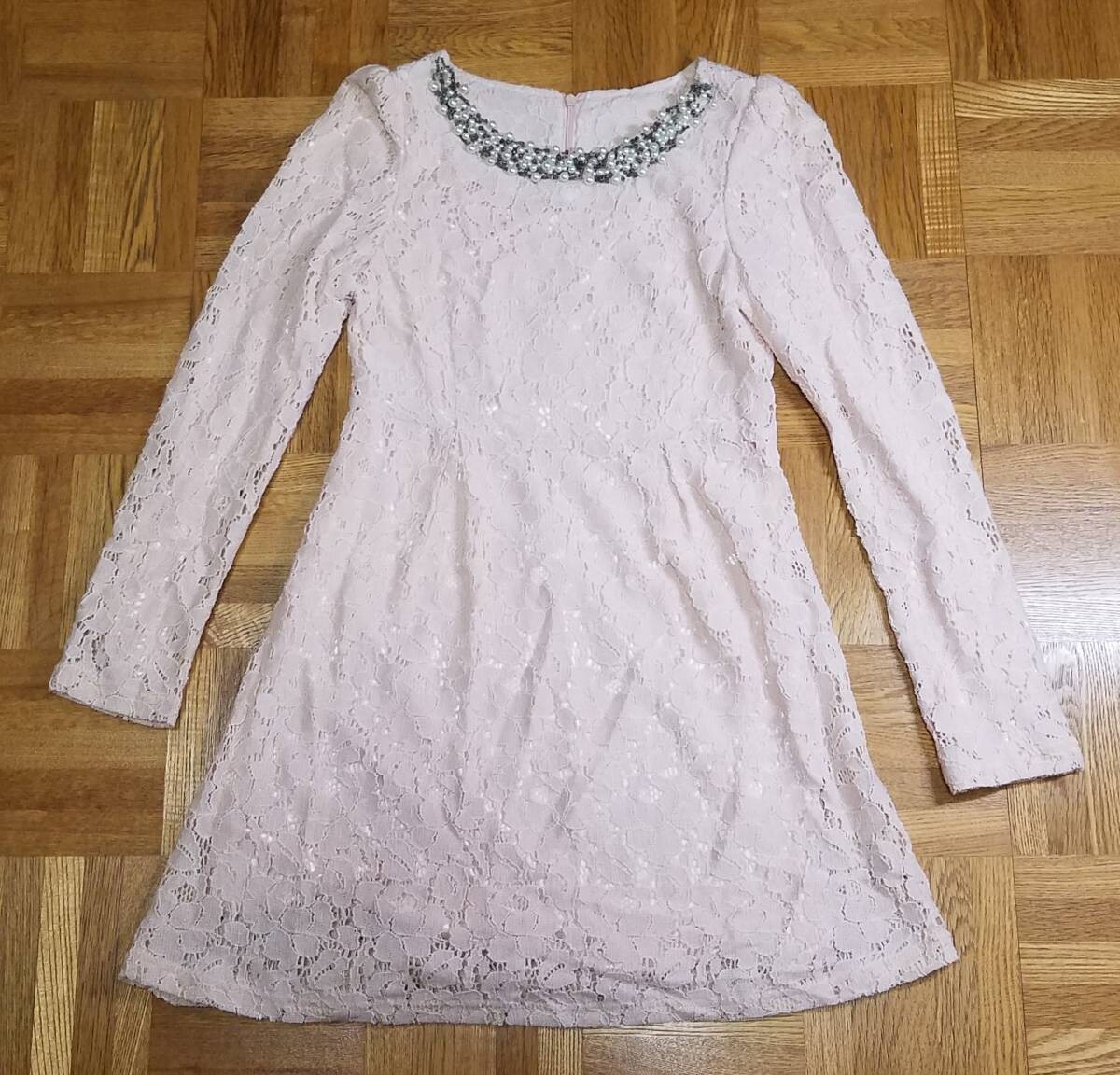 > 美品 レディース ファッションドレス ピンク Sサイズ 胸元かわいい 生地さらさら 着心地抜群 薄ピンクワンピース おしゃれ かわいい