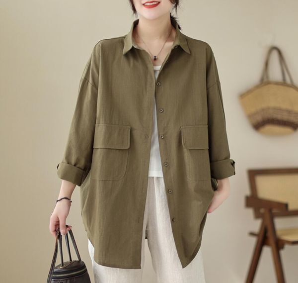 - 秋新品*トップス レディース チュニック シャツ 入卒式 通勤 大人 カジュアル ゆったり 長袖 大きいサイズ ロングシャツ *グリーン