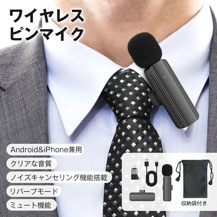 - 新品 ワイヤレスマイク ピンマイク ミニマイク 360°収音 録音 無線 ノイズ抑制 簡単接続 2.4GHz 小型 軽量 Android iPhone クリップ付き