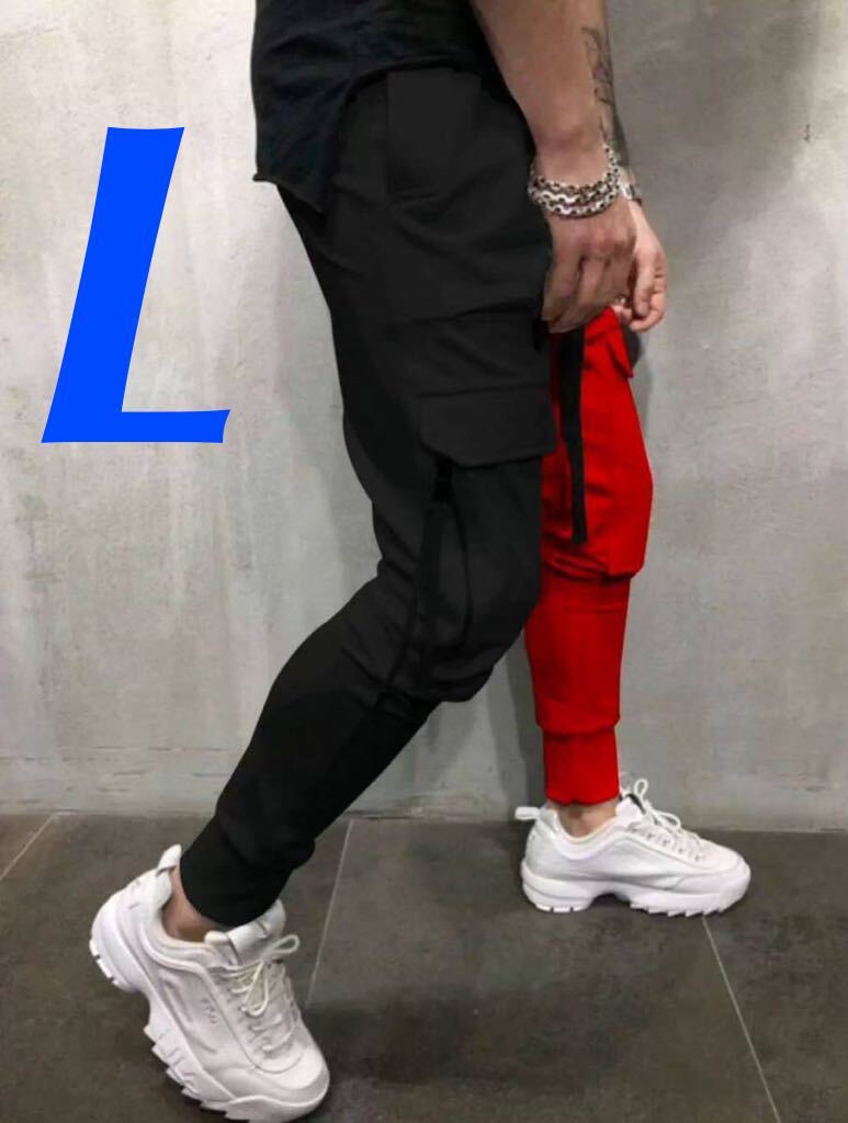 - ジョガーパンツ ストレッチ ツートン トラックパンツ カーゴパンツ 黒赤 L