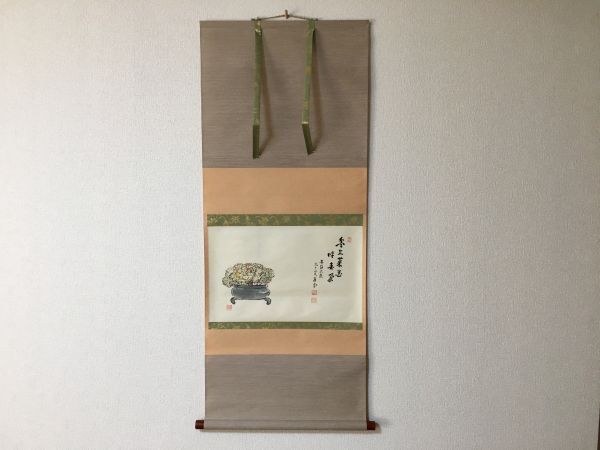 - 【雪華】☆春☆ 大徳寺 吉口 桂堂 横物 葉牡丹之絵 台上菜花春風呼 賛 共箱 掛軸 茶掛 茶道具 【 表 裏 千家 而妙斎 即中斎 鵬雲斎 】