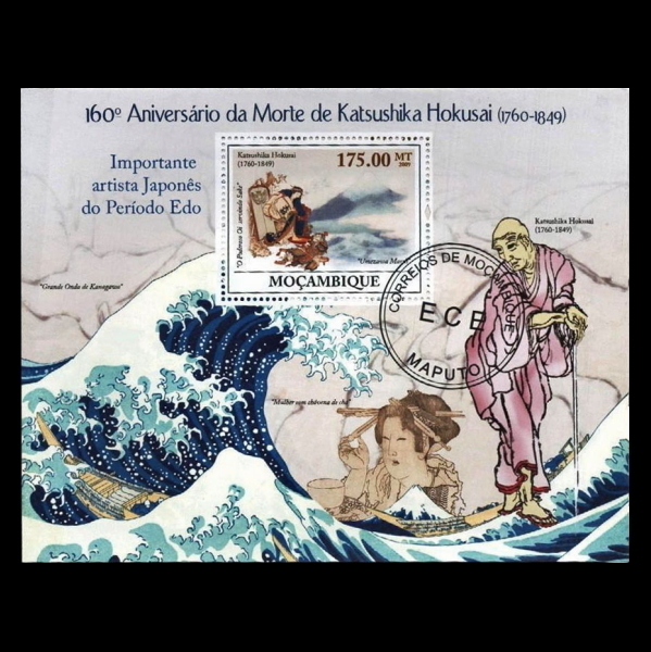 - ■モザンビーク切手 2009年 葛飾北斎 160周年 初日シート