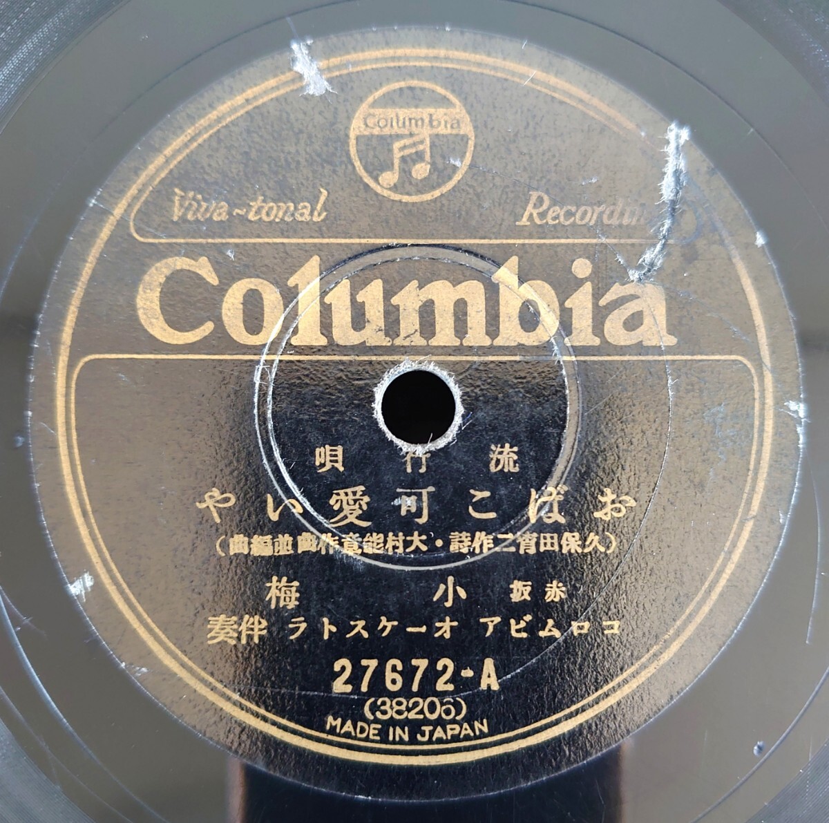 - 【SP盤レコード】Columbia 27672-AB 流行唄/おばこ可愛いや 赤坂 小梅/君に逢ふとて 丸山和歌子