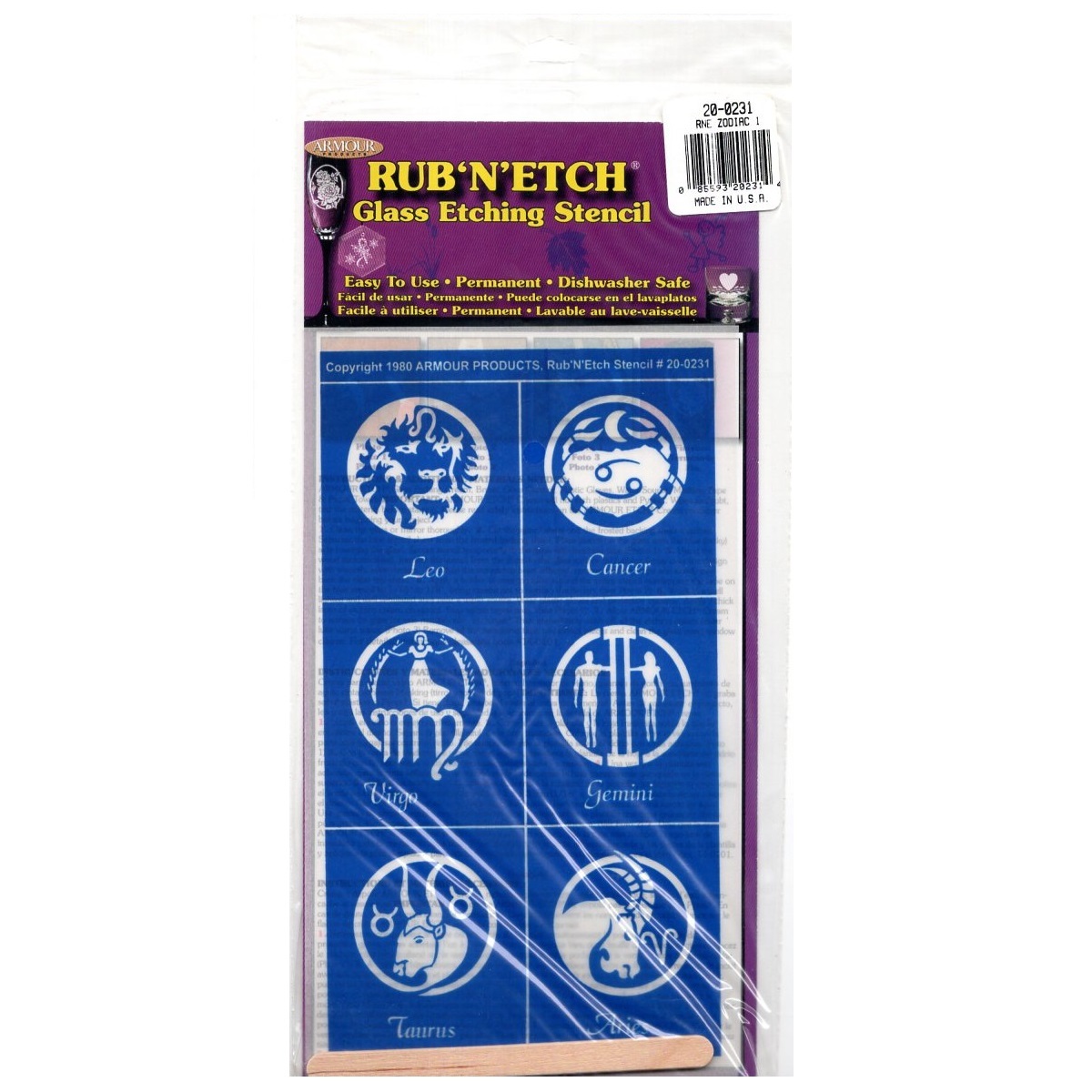 > Armour RUB'N'ETCH Glass Etching Stencil ステンシルシート(星座:獅子座/蟹座/乙女座/双子座/おうし座/牡羊座) 未使用 未開封 米国製