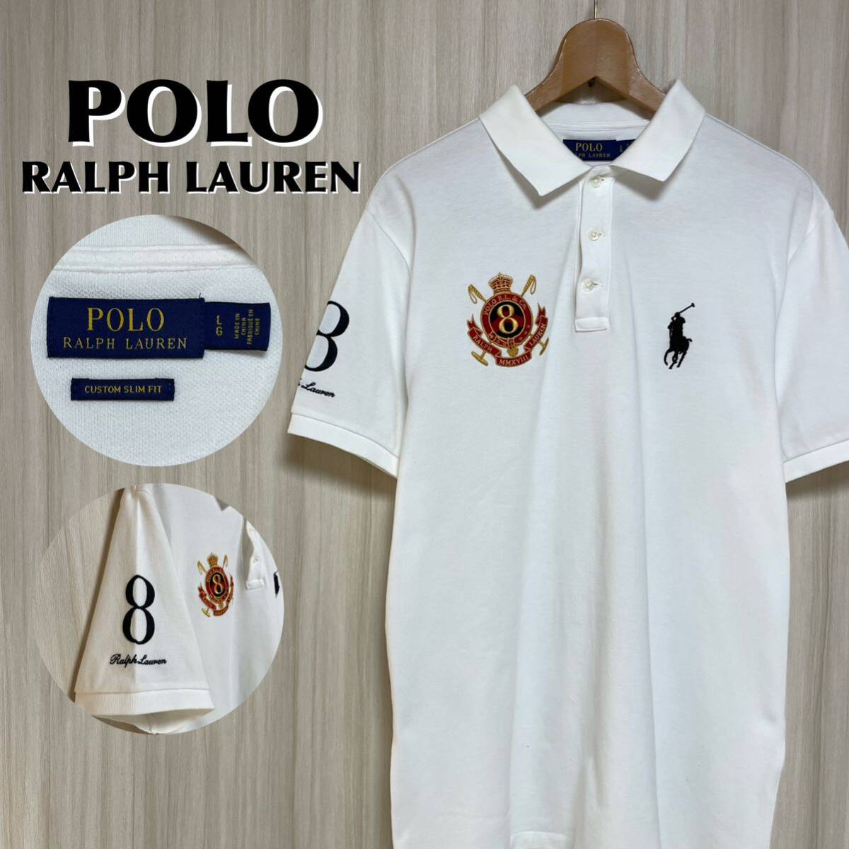 - ☆POLO☆ポロバイラルフローレン 刺繍ロゴ ビッグポニー ナンバリング 鹿の子 半袖ポロシャツ ホワイト 白 人気カラー アメカジ 90s 古着