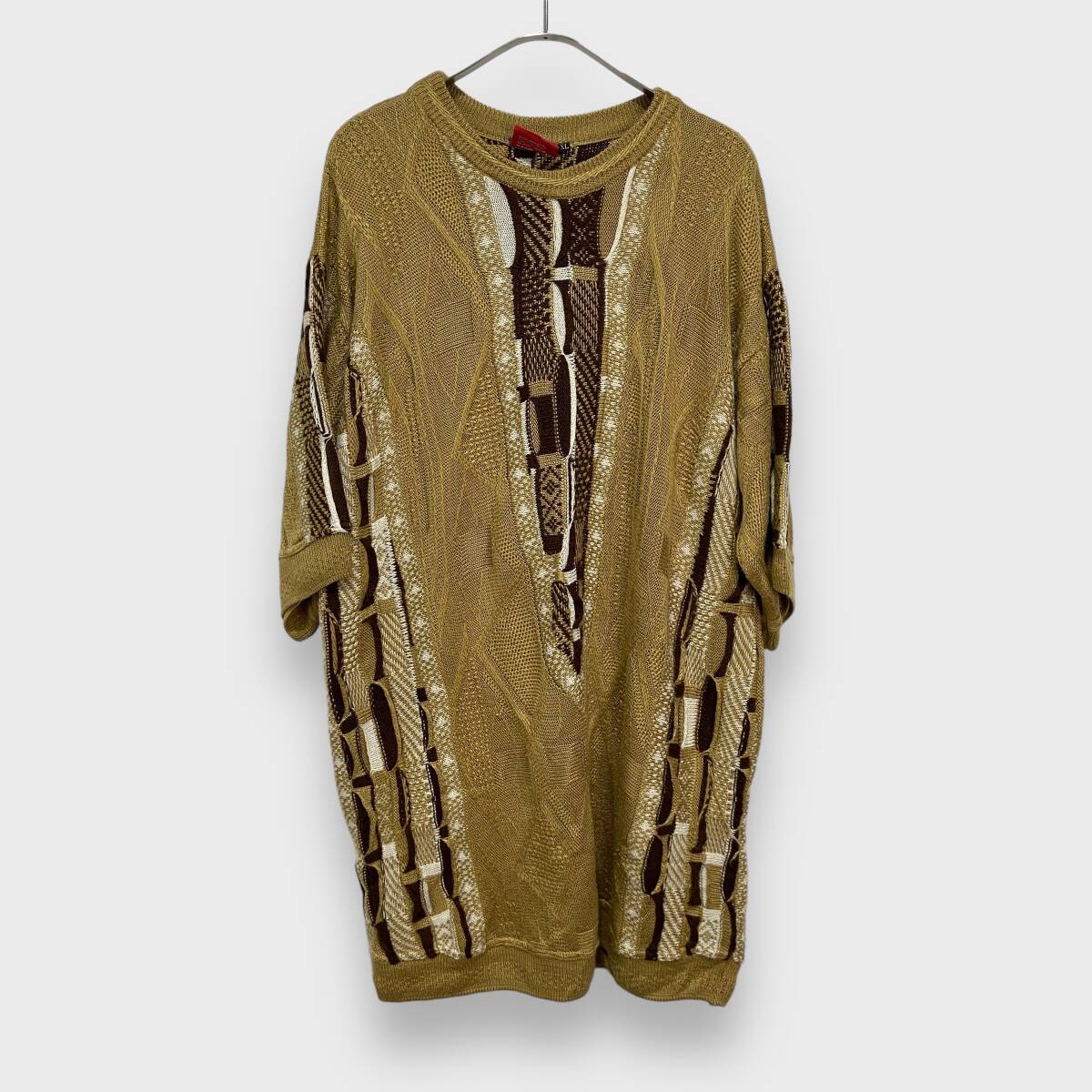 - 送料無料☆COOGI☆DOWN UNDER BLUE☆クージー☆総柄3Dニット☆半袖ニット☆ベージュ☆XL☆H24M