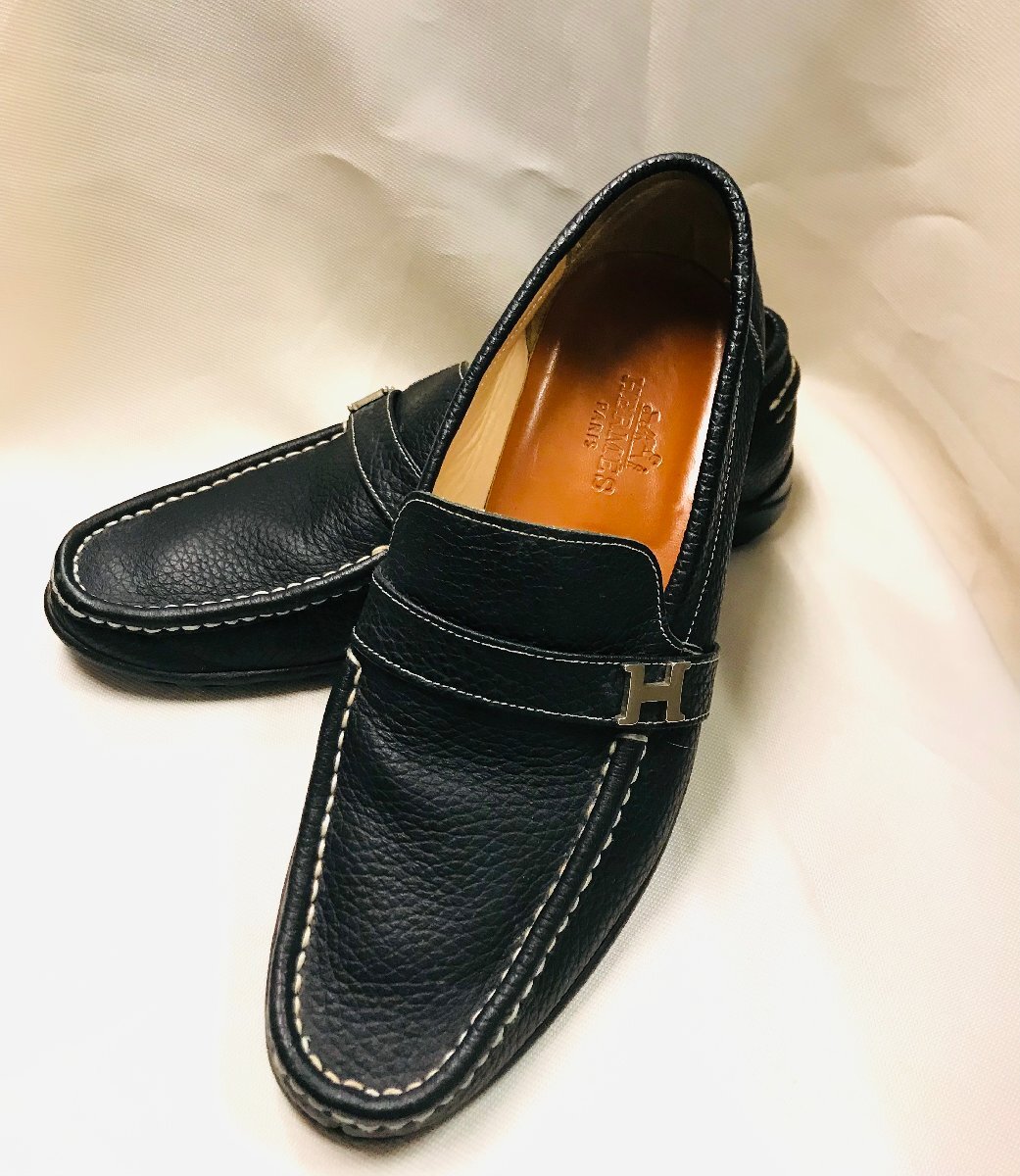 - qob.Z4U01 HERMES エルメス コンスタンス H金具 レザー ブラック HEM 2020 255E メンズシューズ インソール26.0cm相当