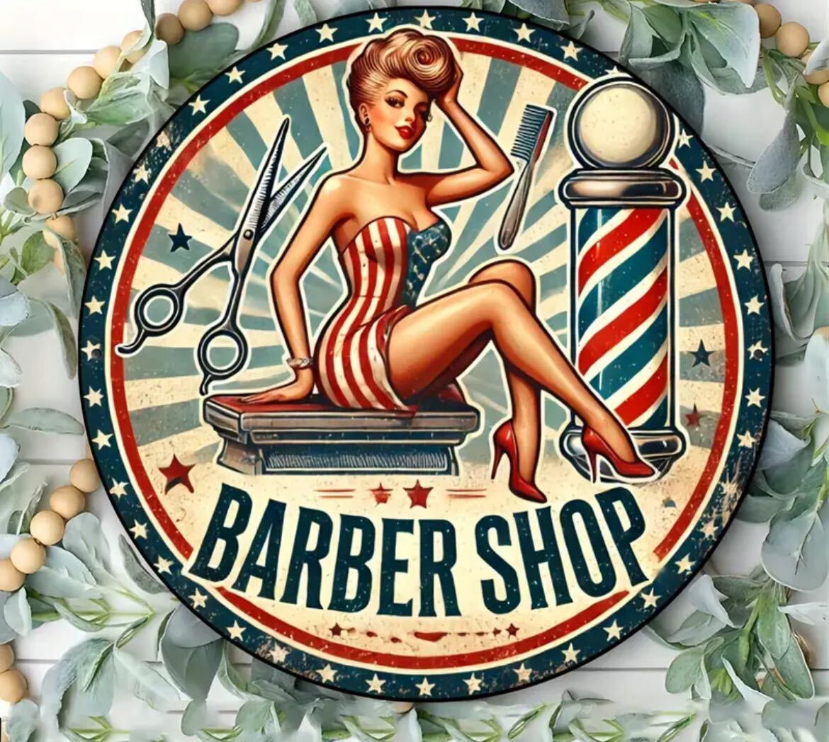 - 新作☆理容・barber 丸型 ブリキ看板 サイン i