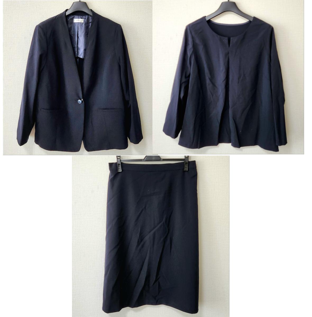 - 【IN-1122】レディース スーツ 3点セット ジャケット ブラウス スカート サイズ3L ネイビー