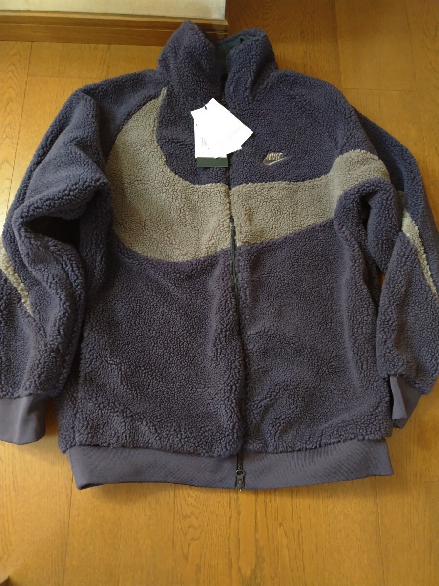 > 新品未使用タグ付 ナイキ リバーシブル ボア フリースジャケット パープル×ブラック Lサイズ ゆうパック1080円