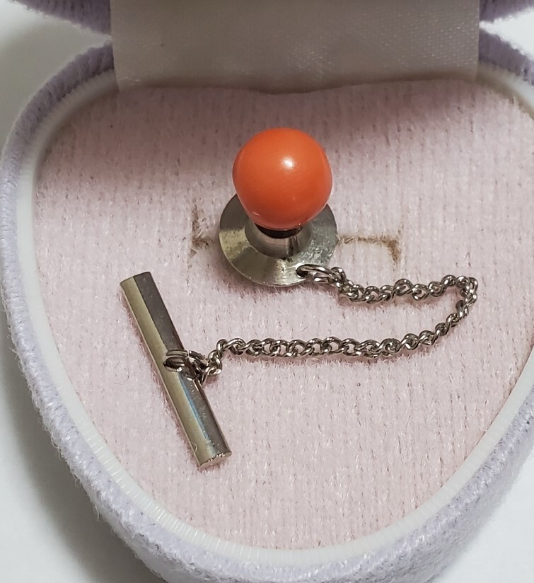 - 珊瑚 タイピン メンズ 0,6㎝ 3,2g 美品