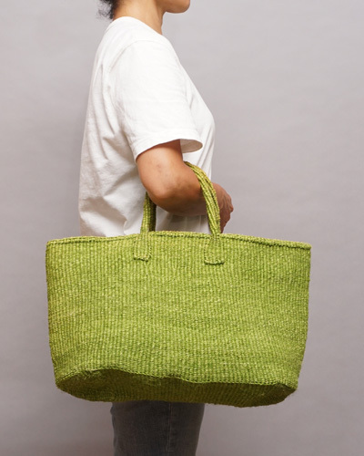 - ケニア サイザルバッグ 黄緑 グリーン ワイドタイプ Lサイズ アフリカンバッグ かごバッグ トートバッグ