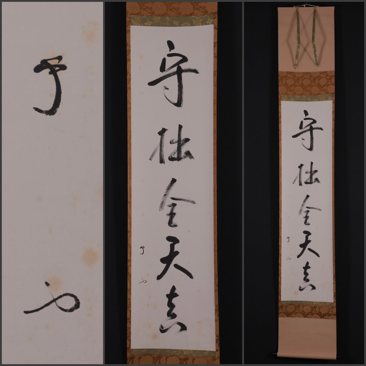 - 【模写】吉】11213 徳翁宗守 有隣斎 書「守拙全天真」 武者小路千家13世家元 宗安 茶掛け 茶道具 禅語 掛軸 掛け軸 骨董品
