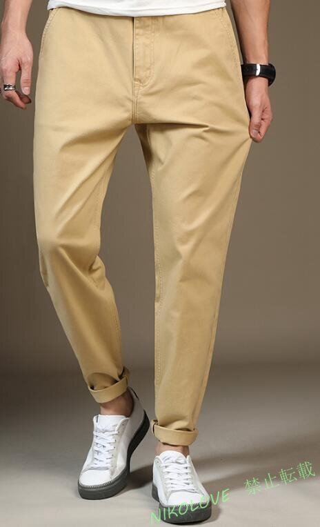 - 新品 チノパン メンズ スラックス ボトムス イージーパンツ ジョガーパンツ ストレッチ テーパード 無地 4色選択可 カーキ LH300