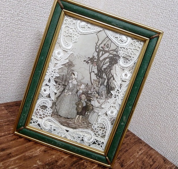 - (RM)アンティーク レトロ(0417-③)レース フレーム 額入り プリント画 アート 置物 オブジェ 刺繍 ヴィンテージ調