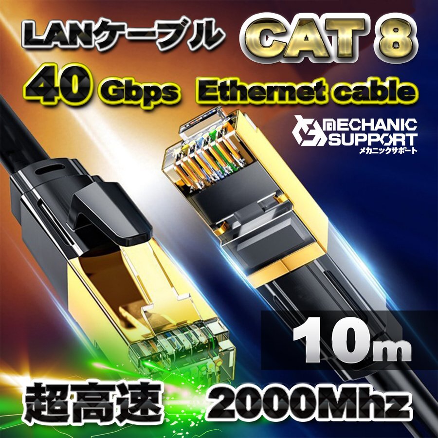 > 【10m】 超高速 CAT8 フラット LANケーブル 26AWG 40Gbps 2000MHz カテゴリー8 インターネット ツメ折れ防止 PS5 Xbox等に対応