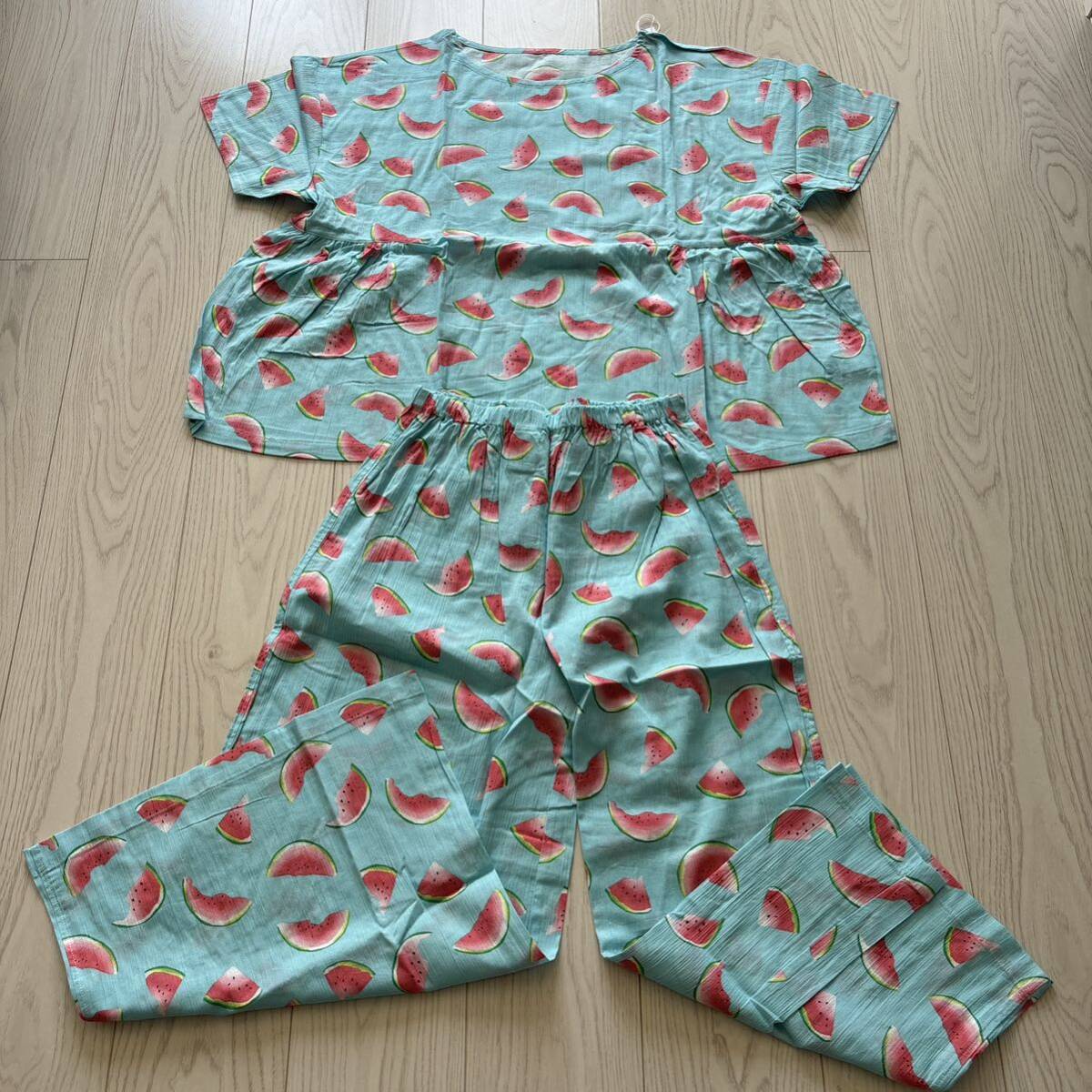 - 未使用●脇 シャーリング パジャマ 上下 セット/サックス 系/Lサイズ/すいか/スイカ/水色/ライトブルー/果物/部屋着/ルームウェア★1779-2