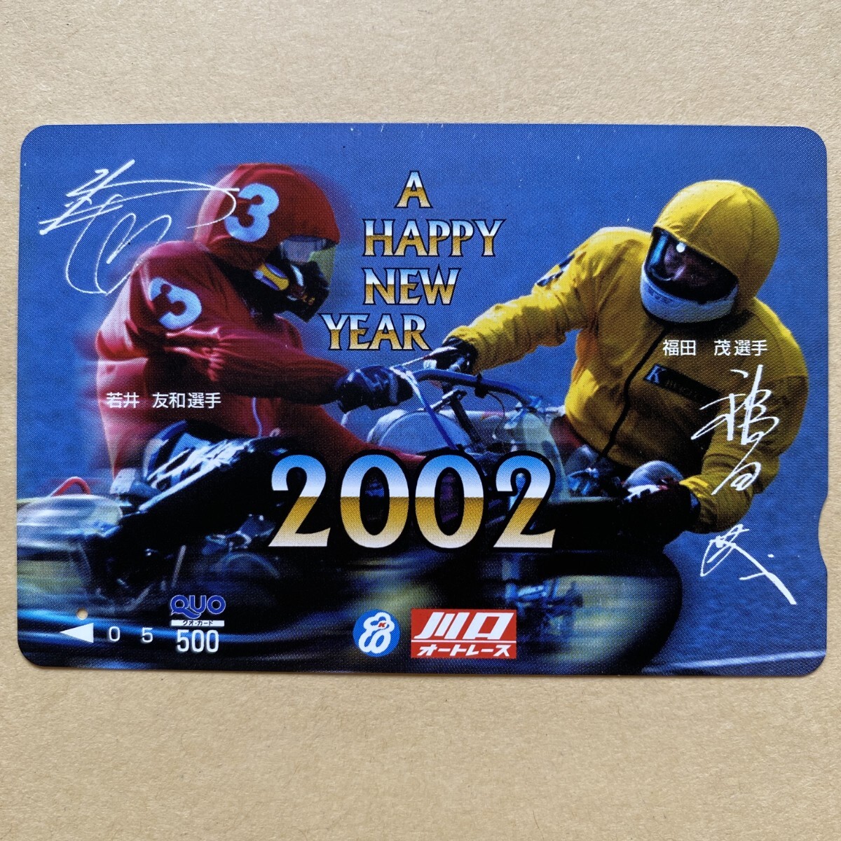- 【使用済】 オートレースクオカード 若井友和 福田茂 A HAPPY NEW YEAR 2002 川口オートレース