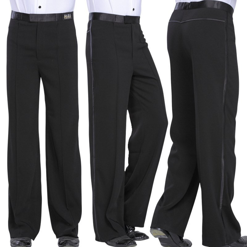 - 未使用 メンズ 社交ダンス ラテン モダン ズボン パンツ 側章 ブラック サイズ選択可