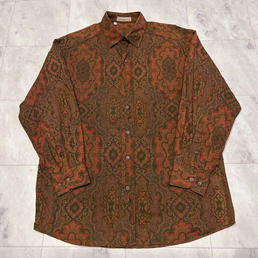 > ITALY製 VALENTINO GARAVANI UOMO 総柄 柄シャツ ペイズリー レトロ ビンテージ 長袖シャツ 綿100%
