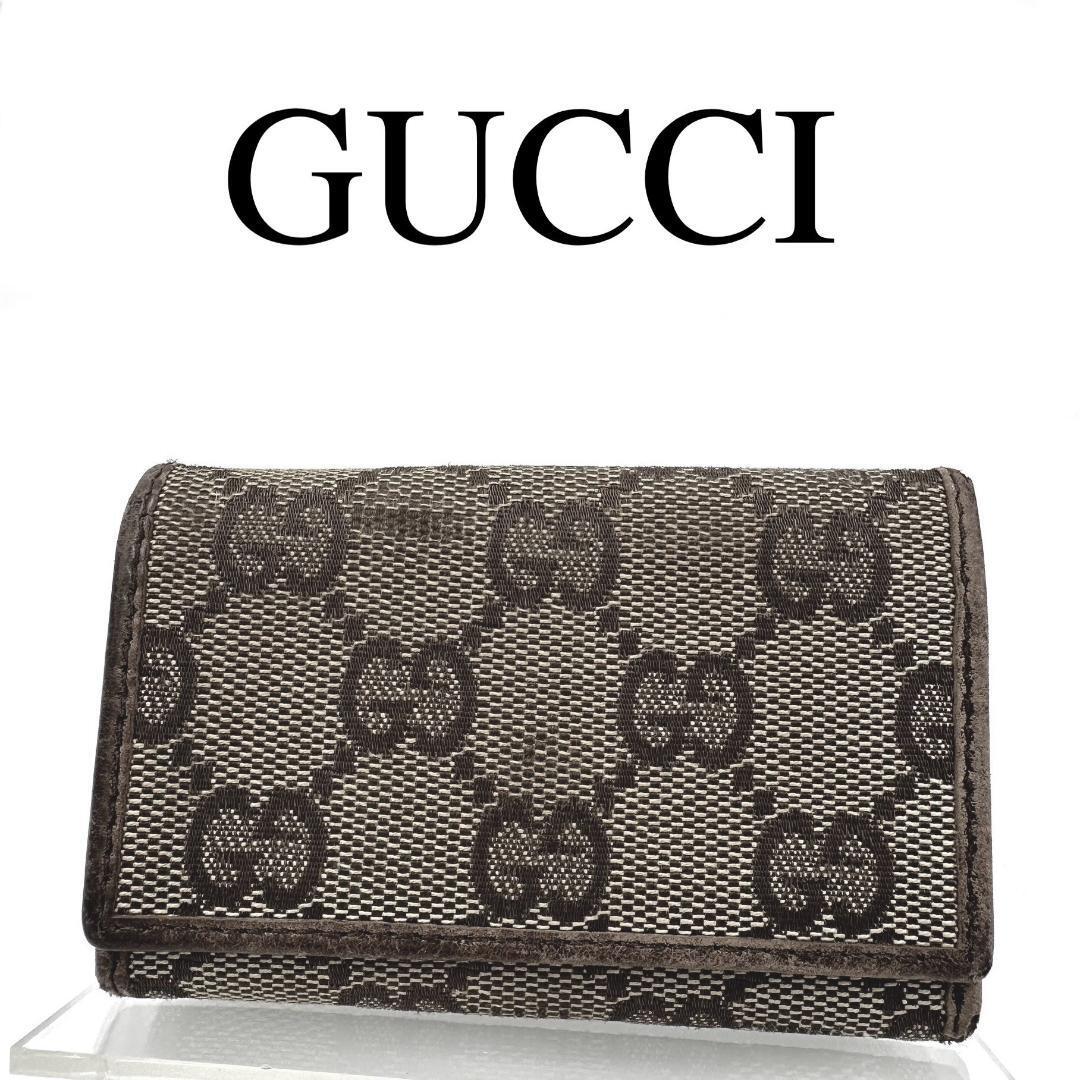 - GUCCI グッチ 6連キーケース GGキャンバス GG柄 レザー