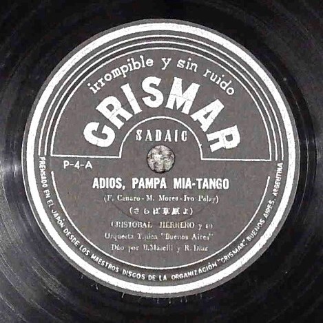 - SP盤 レコード Adios, Pampa Mia / Caminito/ Cristobal Herrero/ ラテン TANGO CRISMAR P-4 ny49
